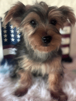 Hi, I’m Jess! I’m a 21-week-old male Yorkshire Terrier with a beautiful black & tan coat, born on February 27, which makes me a Pisces pup. I am ready now to plan my trip to my forever family. Once I reach my adult size, I’m expected to weigh between 5–6 lbs. I’m APRI registered. Be prepared for endless love, laughter, and puppy kisses.